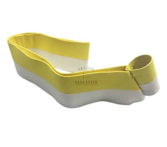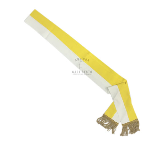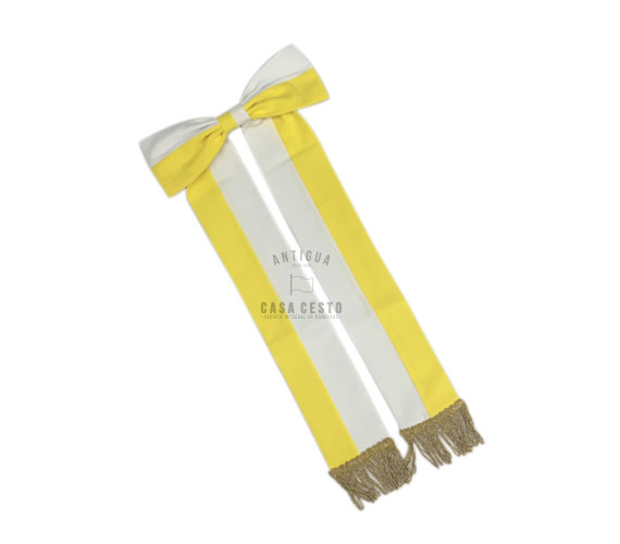 Banda de escolta: Realizada en tela gross de seda con terminación de flecos dorados tipo gusanillos.