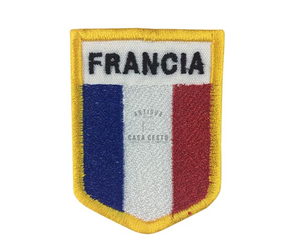 – Escudo País, borde amarillo 5,5 x 7,5 cm.