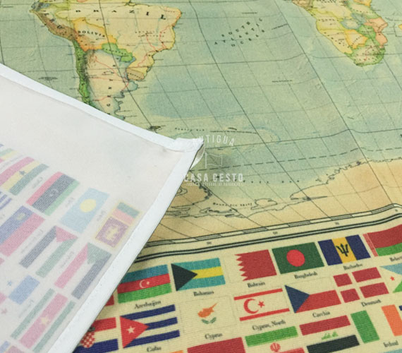 Mapas realizados en tela con variedad de diseños y medidas.